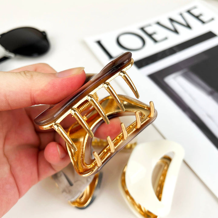 Introducing our Acetate Alloy Vintage Hollow Semicircle Hair Clip, a timeless accessory that exudes vintage charm and elegance. Crafted with precision from high-quality acetate and alloy materials, this hair clip combines durability with retro-inspired style for a truly standout look.