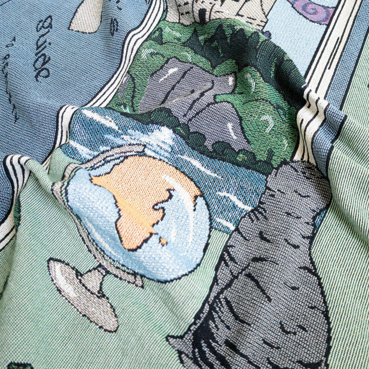 The bookish blanket of your dreams! Featuring a metallic silver yarn throughout, this blanket captures the essences of all things romance and fantasy reader. The artwork created by Lindy and each throw is woven on a jacquard loom here in North Carolina.