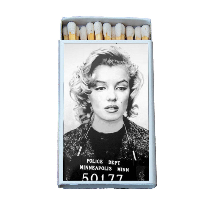 • This unique box of matches features the mugshot of Marilyn Monroe on both sides