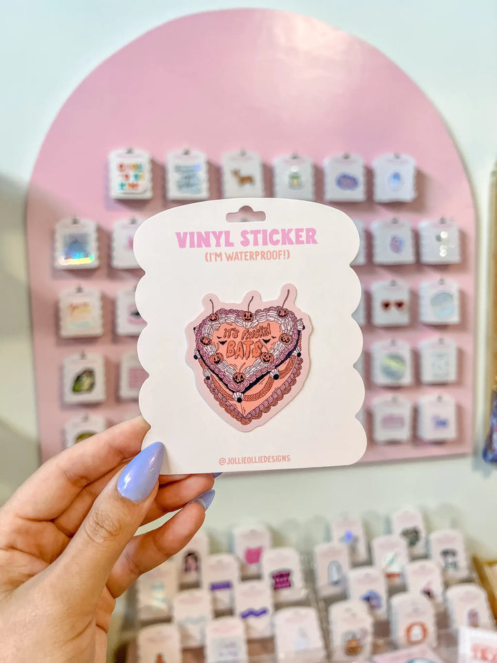 It's Frickin Bats as a cute little heart cake! (Does not come on a backing card) This is a 2.5inch sticker