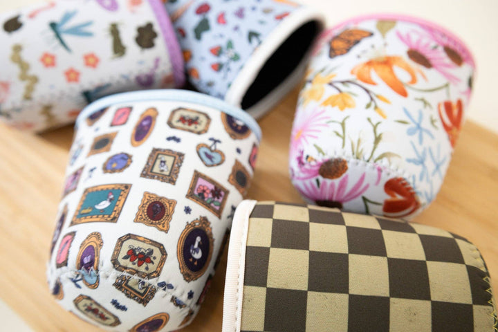 Made from insulating neoprene, it keeps your drink at the perfect temperature while keeping your hands comfortable. No more hot cup burns or slippery condensation. Available in two sizes: