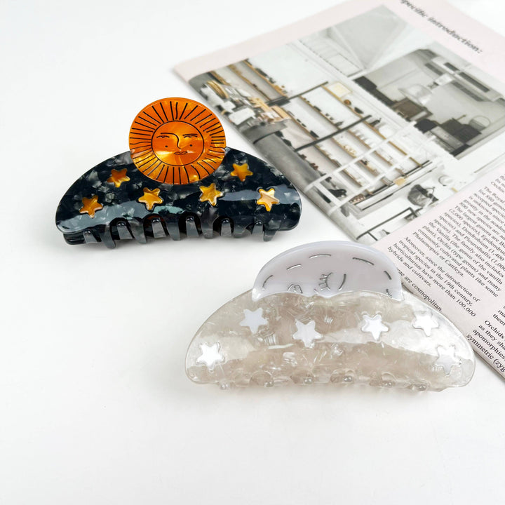 Introducing our Sun Hair Clip and Moon Hair Clip, a celestial-inspired accessory to elevate your hairstyle.Embrace the beauty of the cosmos and adorn your hair with our Sun Claw Clip and Moon Hair Clips for a celestial touch that shines bright all day long.